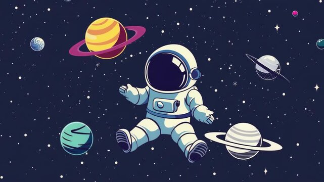 Small astronaut toy stands cheerfully on a colorful backdrop, inviting playful imagination and space exploration fun for children