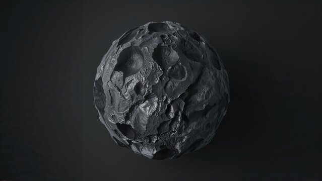 Dark asteroid or moon rock with a rugged and cratered surface. Space, astronomy, and celestial body. The concept of exploration and space science.