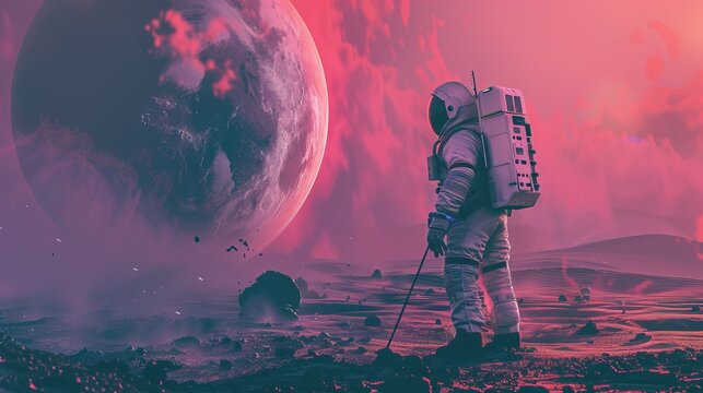 Full moon. and planet Earth against the background of the starry sky. Space background with Earth and satellite Moon. Elements of this image furnished by NASA.