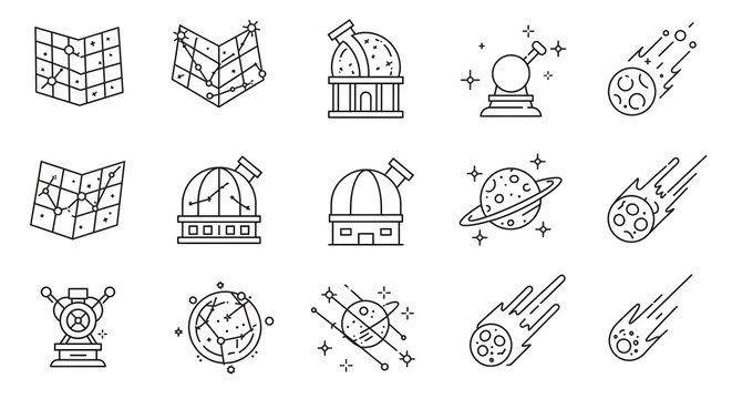 Astronomy timeline vector concept illustration. Astronomical buildings to observe the sky, observatory with giant telescope, planetarium, satellite dishes on hills. Cartoon background for infographic