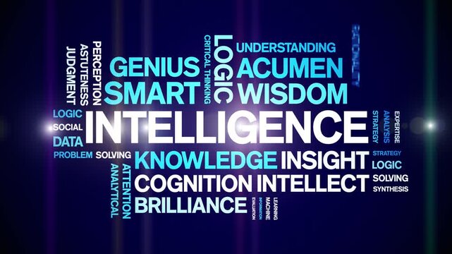 intelligence animated word cloud-text design animation tag kinetic typography seamless loop.