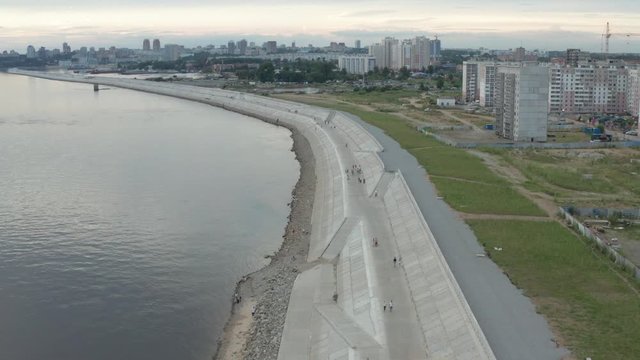 City embankment in Khabarovsk. 2019 year. Shooting from the drone.