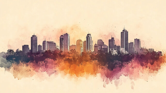 Asuncin, Paraguay, color pen pencil hand-drawn effect drawing illustration for travel poster, card, wallpaper, backdrop or banner. Modern, clear, artistic and simple