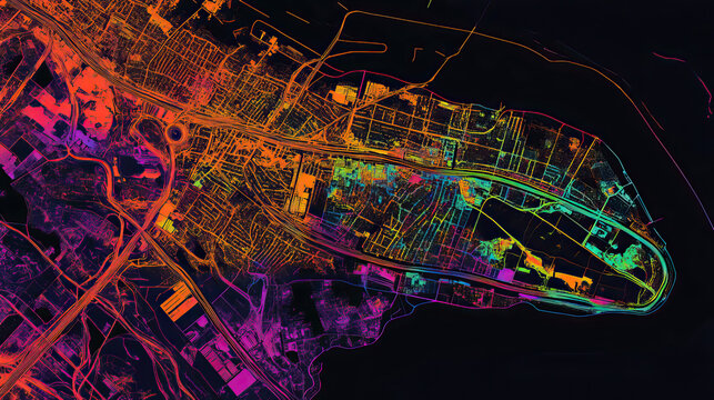 Technical aerial visual, 3D LiDAR GIS aerial map satellite scan model isolated, showing Asuncin, Paraguay . Elevation, topography, render
