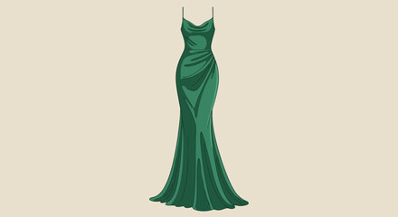 A floorlength emeraldgreen gown with spaghetti straps a draped cowl neckline and asymmetrical gathers at the waist