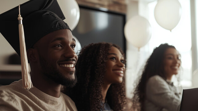 Indian school children wearing graduation caps while studying or preparing for exams at home