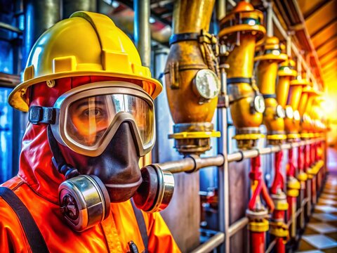 Macro Photography of Atex Explosive Atmosphere Zone with Safety Equipment and Hazard Signs