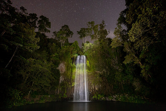 Millaa Millaa Falls at night.  The falls are located just outside the tiny town of Millaa Millaa on the Atherton Tablelands, north Queensland, Australia
