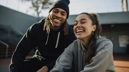Two people on a sports court, sharing a joyful moment.