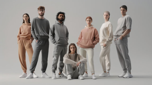 Weekend Vibes: A Group of Models in Cozy Sweatshirts and Tees for a Relaxing Day