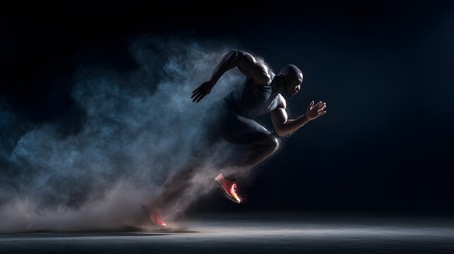 Sprinter in voller Geschwindigkeit vor rauchiger Kulisse
