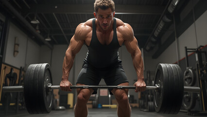 weightlifting focused moment. athlete preparing for lift. ultra realistic weightlifting pose. intensity before lifting weights.