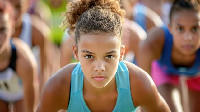 Sweat beads glistening on the forehead of a sprinter as they grip the starting blocks in anticipation.