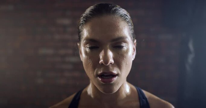 Conviction focused determined passionate confident powerful eyes stare intense athlete exercise trainer male
