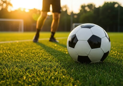 Dynamic silhouette of a soccer player kicking a ball mid-air with powerful motion