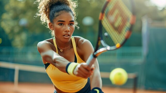 Focused tennis player in action on the clay court during a sunny day, highlighting determination and athleticism. The image captures the essence of competitive spirit in tennis