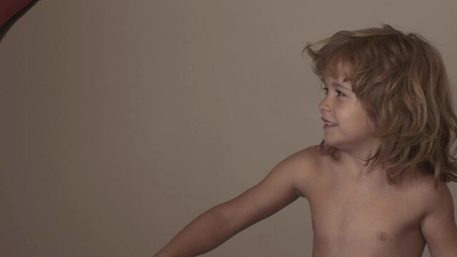 A woman with curly hair stands, arms outstretched, exuding strength and freedom against a textured concrete background.