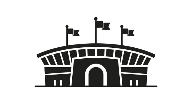 A striking black silhouette of a stadium with flags waving proudly in the breeze silhouette