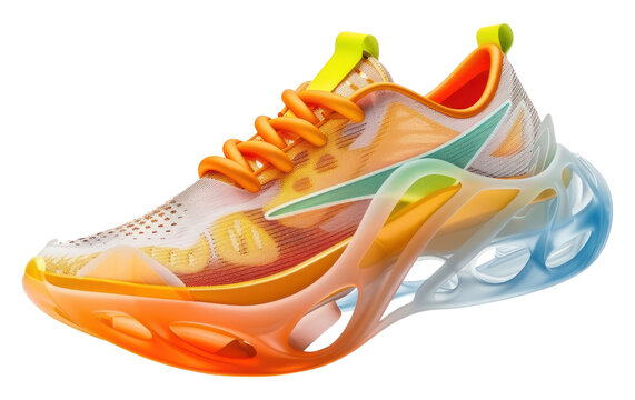 Colorful Athletic Shoes Displayed in Neon Lighting