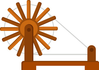 Traditional Charkha Spinning Wheel Illustration in Wooden Style