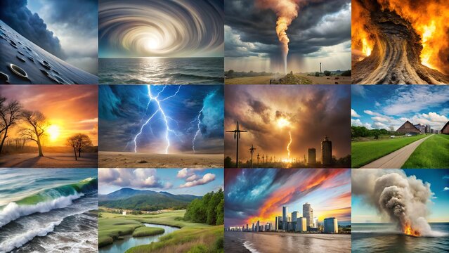 Extreme Weather Events Collage PNG - Hurricanes, Tornadoes, and Heatwaves Depicting Climate Change Impact