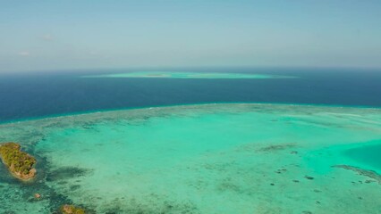 Tropical islands surrounded by an atoll and a coral reef view from above. Balabac, Philippines. Summer and travel vacation concept
