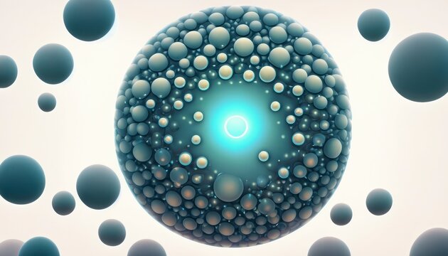 Realistic depiction of a metallic atom surrounded by orbiting electrons in a serene blue background