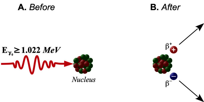 Pair production is a process in which the interaction of a gamma photon with an atomic nucleus results in the production of an electron-positron pair