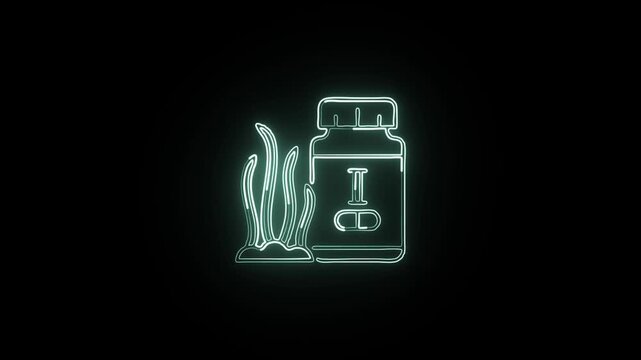 Glowing neon line iodine icon with shimmering animation. Chemistry element symbol animation HD video isolated on black background