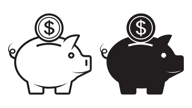 Adobe IllustrBlack and white illustration of piggy banks with coins symbolizing saving money and financial growth