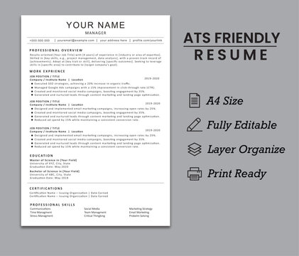 Editable ATS Friendly, ATS CV Format, ATS Resume Layout CV Template for Resume Job Applications