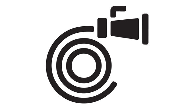 Simple black silhouette of a coiled hose with a nozzle attachment