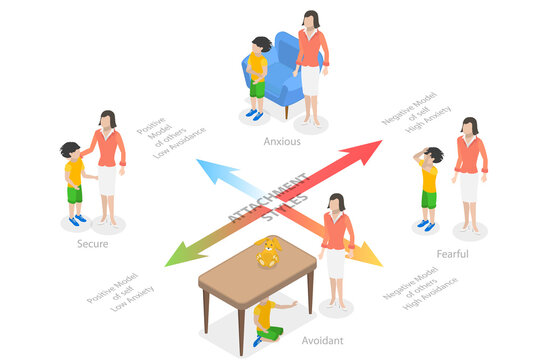Child attachment set. Secure, anxious, avoidant or fearful attachment