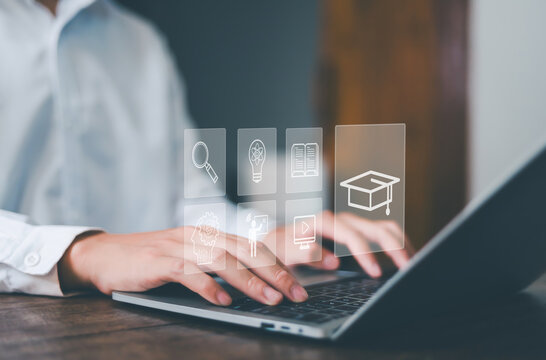 E-learning education concept, internet lessons and online webinar.  who attends online lessons on a digital Education  learning online with webinar, learn,training, education, course, tutorial,