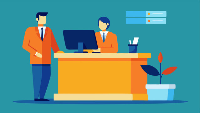 A sleek and modern information desk attended by a helpful staff member.