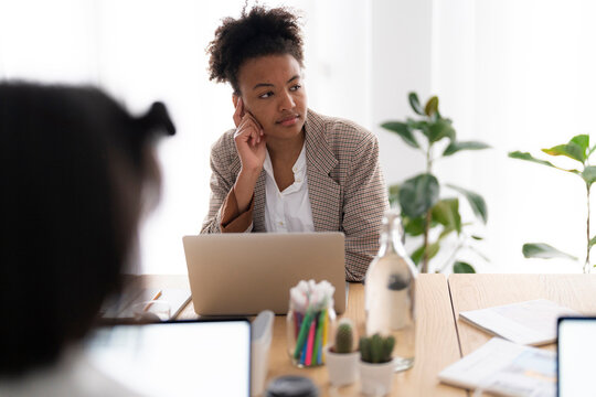 Worried young woman patient sitting at a psychologist's therapist appointment and telling about mental problems, attentive mature female doctor is listening and making notes. Psychotherapy concept