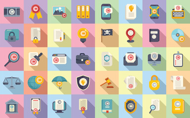 Copyright law icons set flat vector. Author contract. Property patent