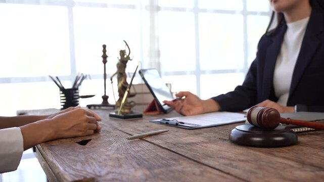 Legal Counsel: A scene captures the essence of legal consultation, with an attorney engaged in discussion. A symbol of justice and the tools of the trade complete the image, symbolizing law and order.