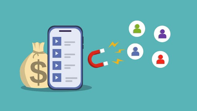 Magnet pulling followers, comments and likes. Positive feedback in social media concept. Social networks influencing and marketing concept. Vector illustration.