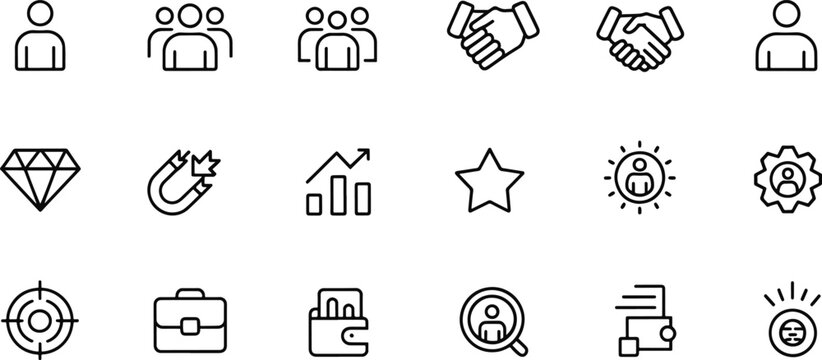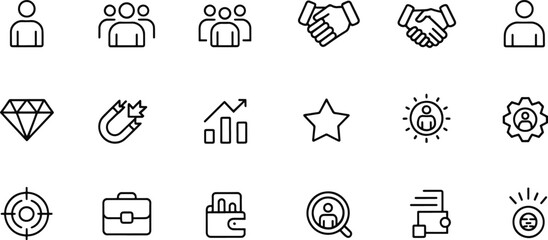 Business and Management Line Icons Symbolizing Success and Strategy with Clear Visuals for Business Concepts