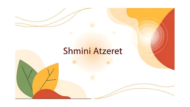 A vibrant graphic design celebrating Shmini Atzeret with colorful leaves and abstract shapes
