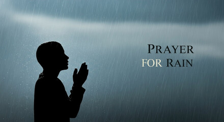 A young person in silhouette prays with hands clasped as rain falls, embodying hope during a Jewish holiday