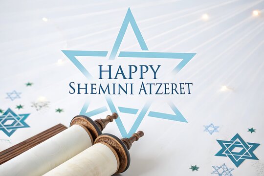 Celebratory Artwork for Shemini Atzeret with Star of David and Torah Scrolls