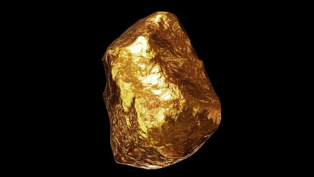 Realistic looping 3D animation of the shining gold nugget demonstration rendered in UHD with alpha matte
