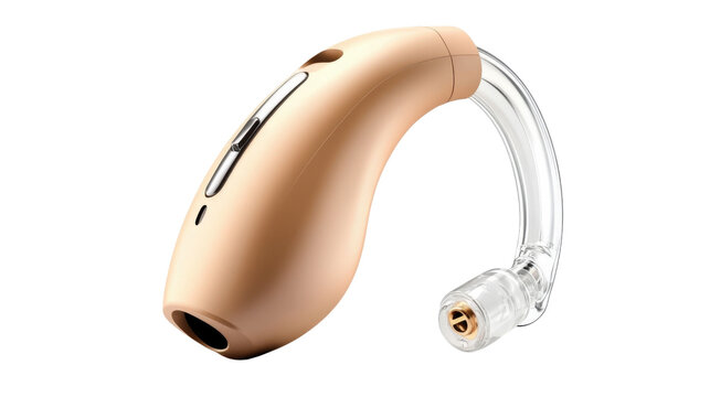 Hearing Aid: A close-up shot of a modern hearing aid, highlighting its sleek design and advanced technology, essential for enhancing audibility and communication.