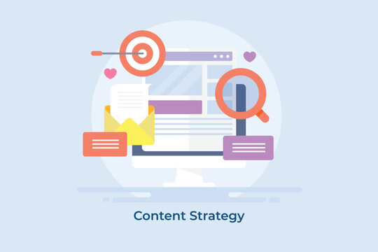 Content marketing cycle - creating, publishing, distributing content for a targeted audience online and analysis.