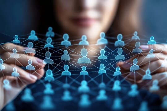 Networking Success: Woman connecting the dots, symbolizing strong professional network and digital connections.