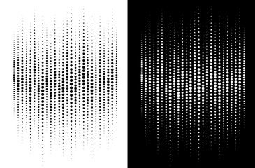 Halftone gradient white circle dots texture isolated on  background. Grunge backdrop template using halftone pattern. Sound wave. Music audio beat.  Equalizer design element. Vector illustration.