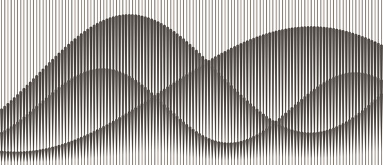 Abstract art geometric background with vertical lines. Optical illusion with waves and transition.