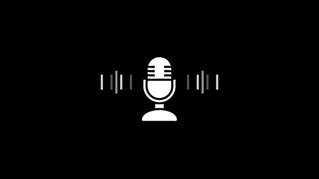 Microphone animation.Voice recording podcast mic microphone icon animation. audio microphone icon animation. Microphone icon animation on black background